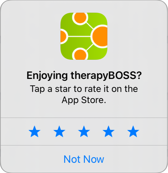 Very occasionally, you may be prompted to rate the therapyBOSS app in the App Store if you haven’t already done so: